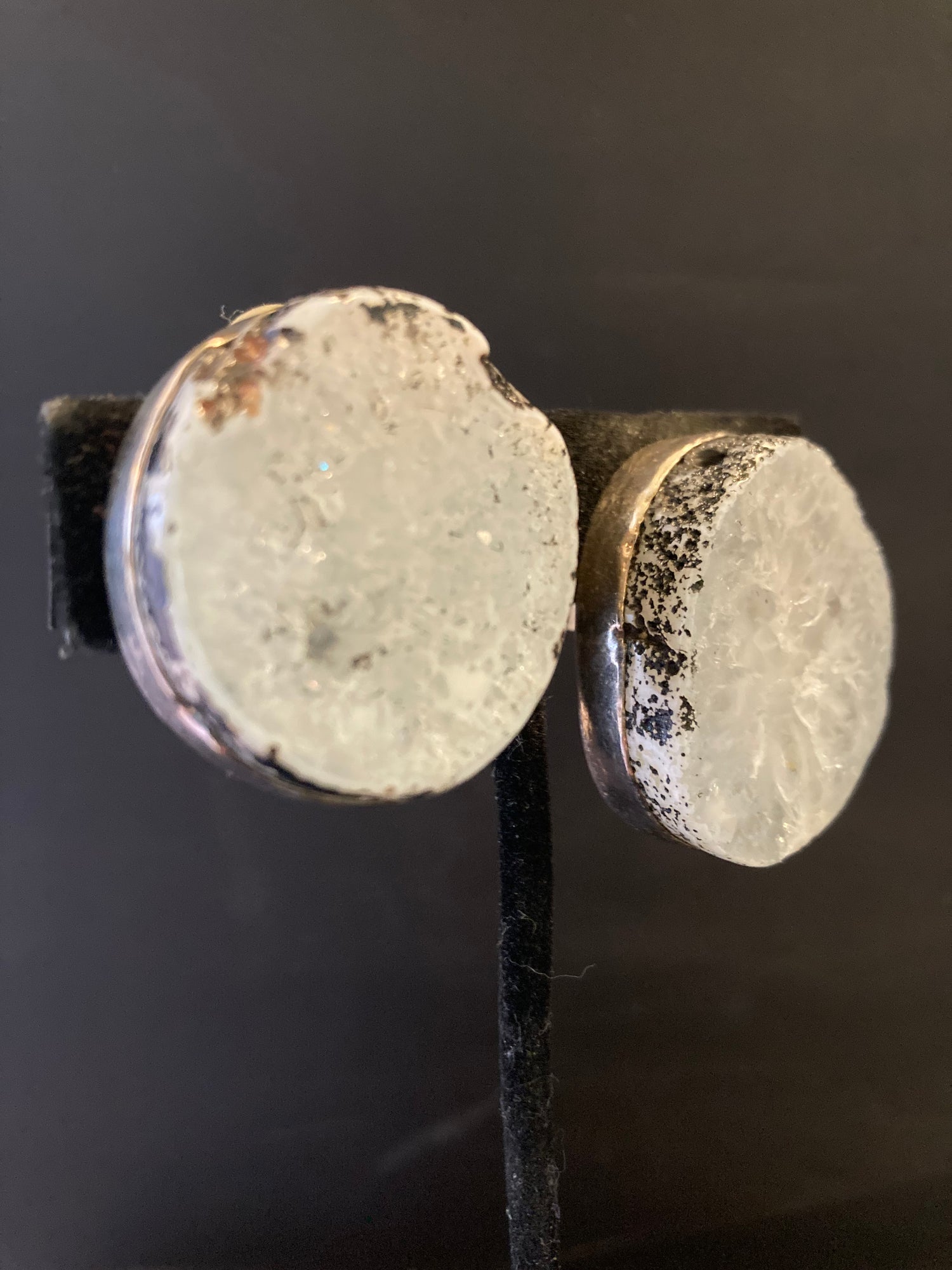White with Black Agate Earring