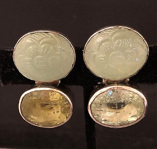 Carved Aquamarine and Faceted Lemon Citrine Earring
