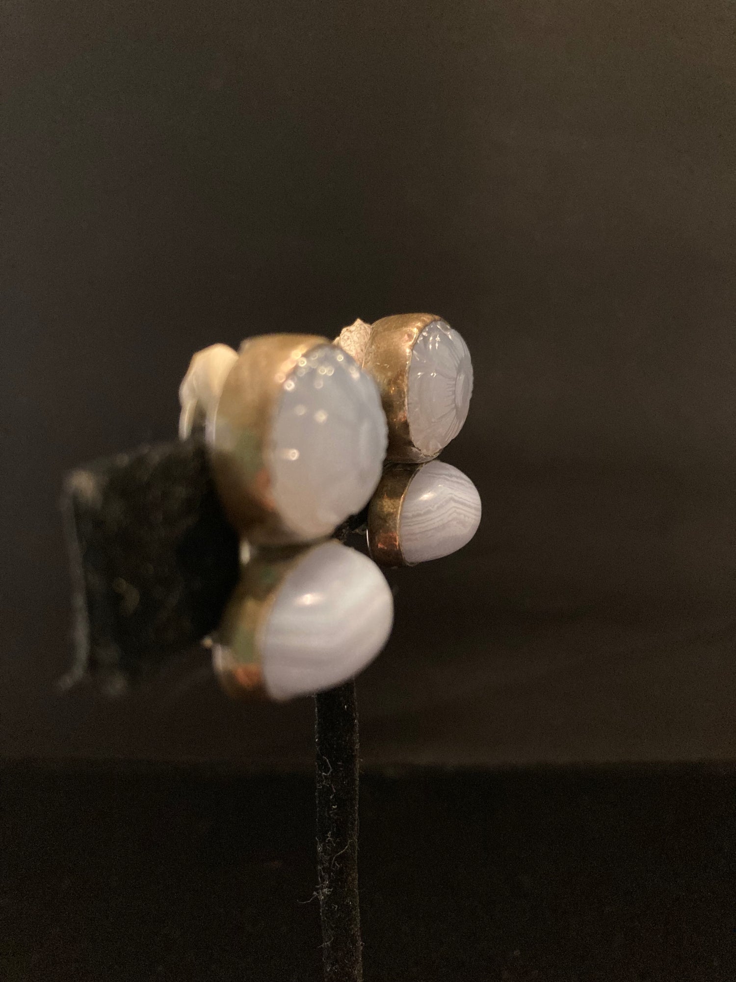 Carved Chalcedony Flower, Blue Lace Agate Earring (Bluish Lavendar in color) does not show well in picture.