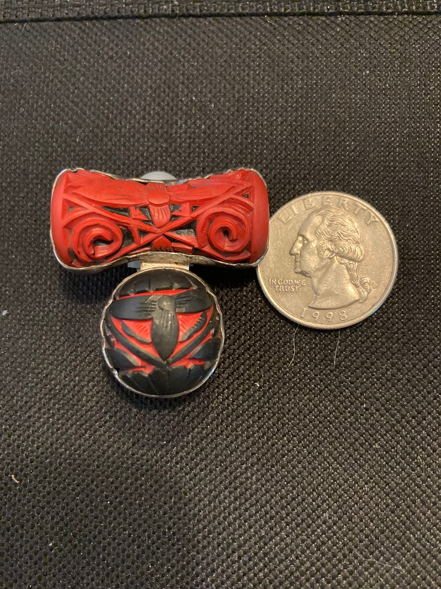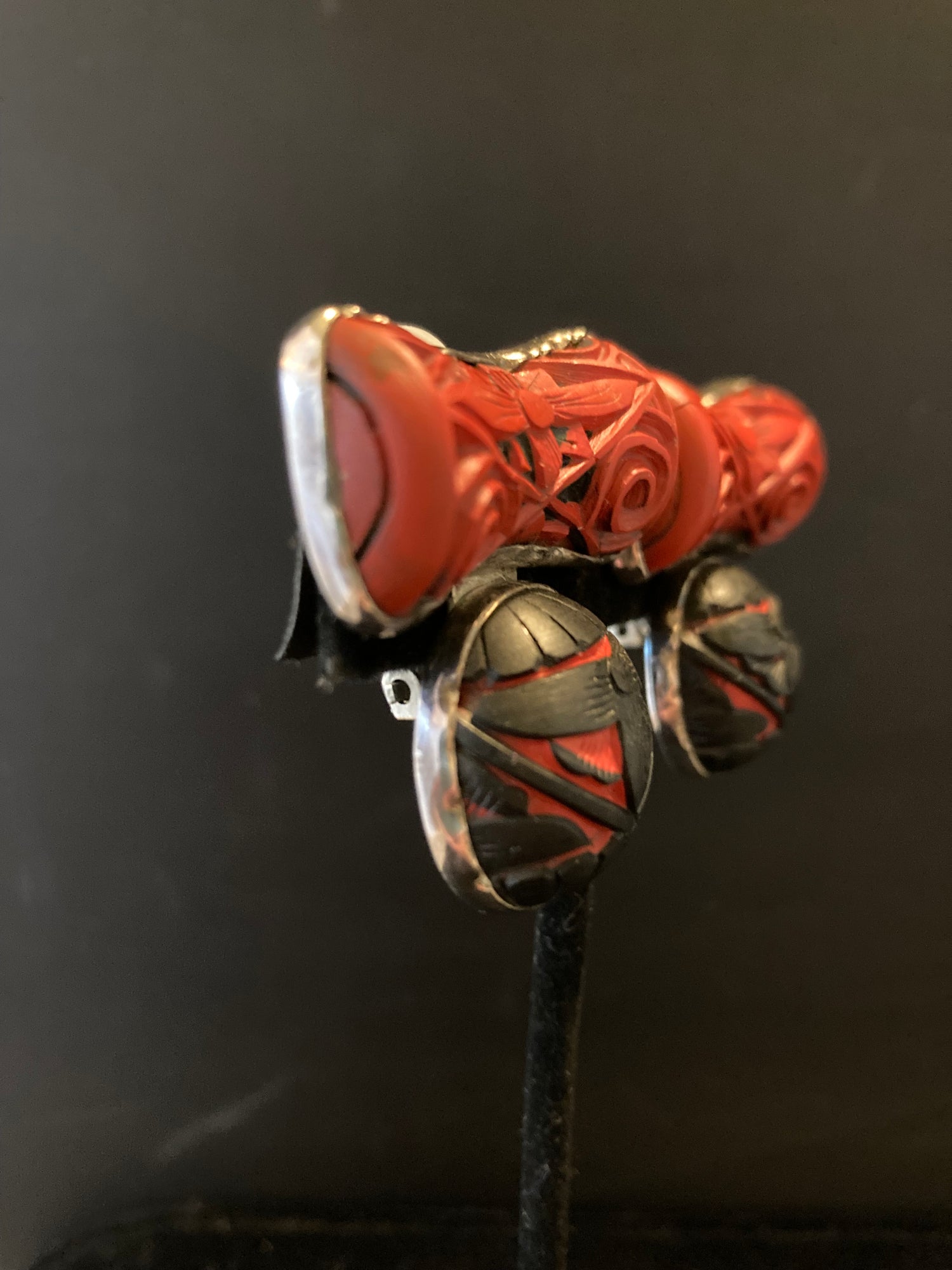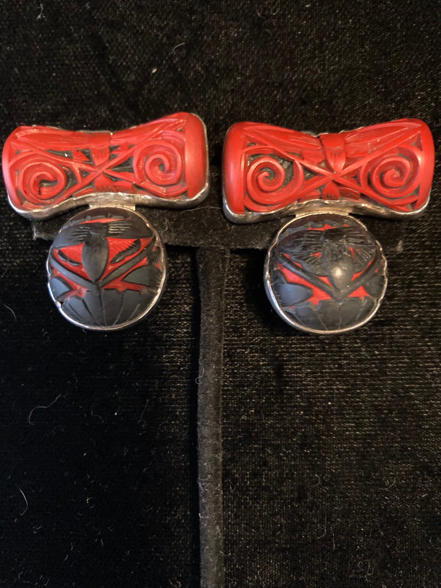 Black and Red Carved Cinnabar Earring