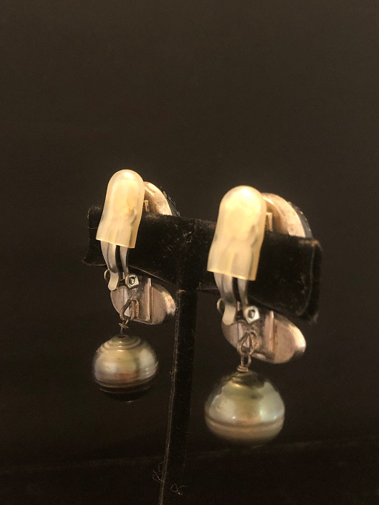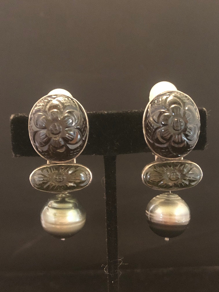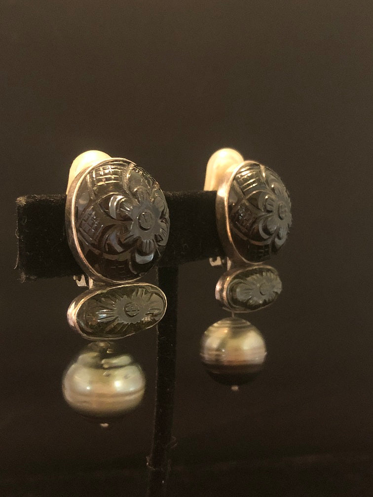 Dark Brownish/Black Tourmaline, Dark Green Tourmaline, South Sea Pearl Earring