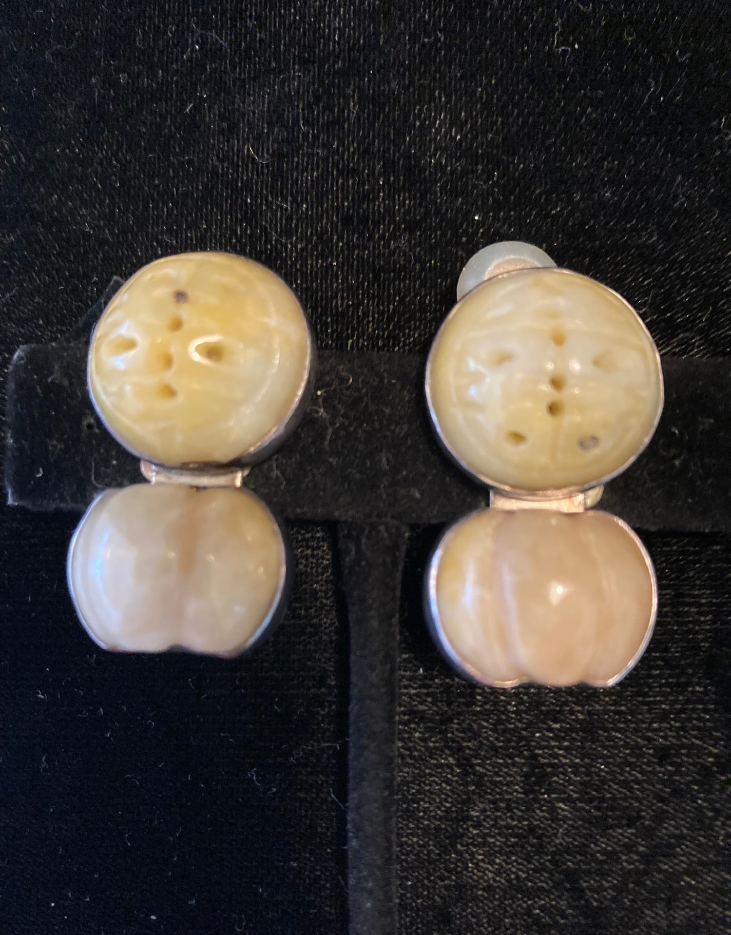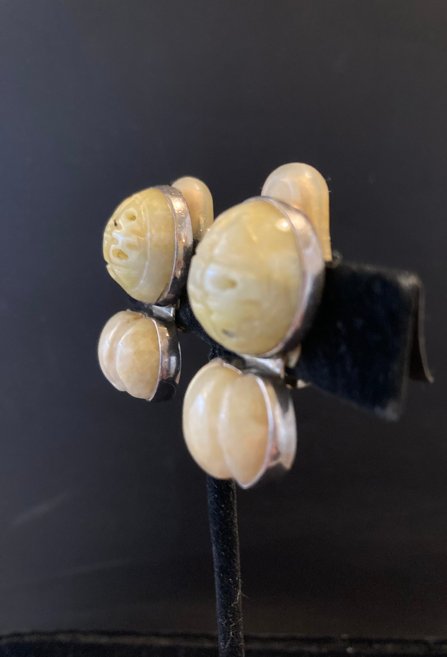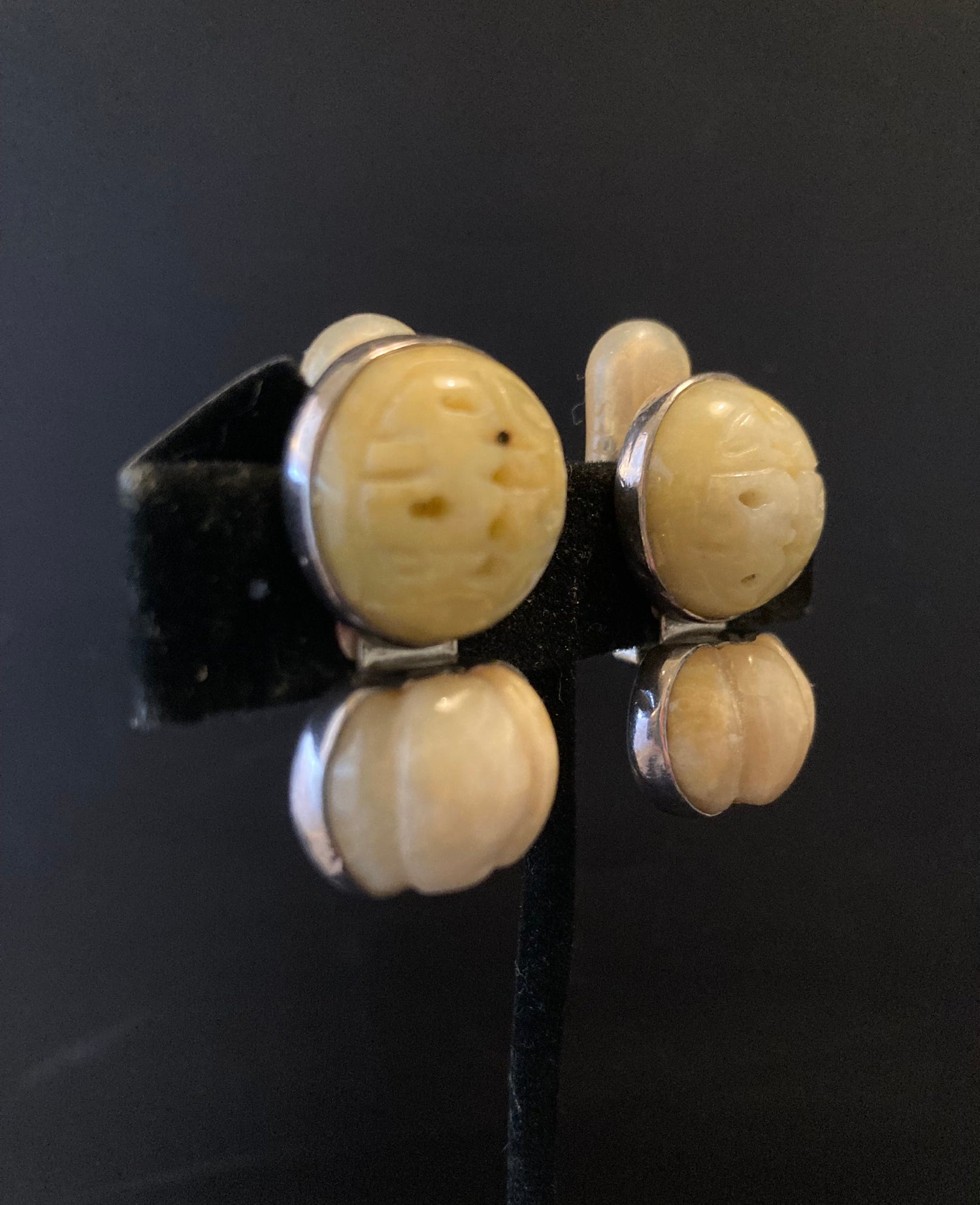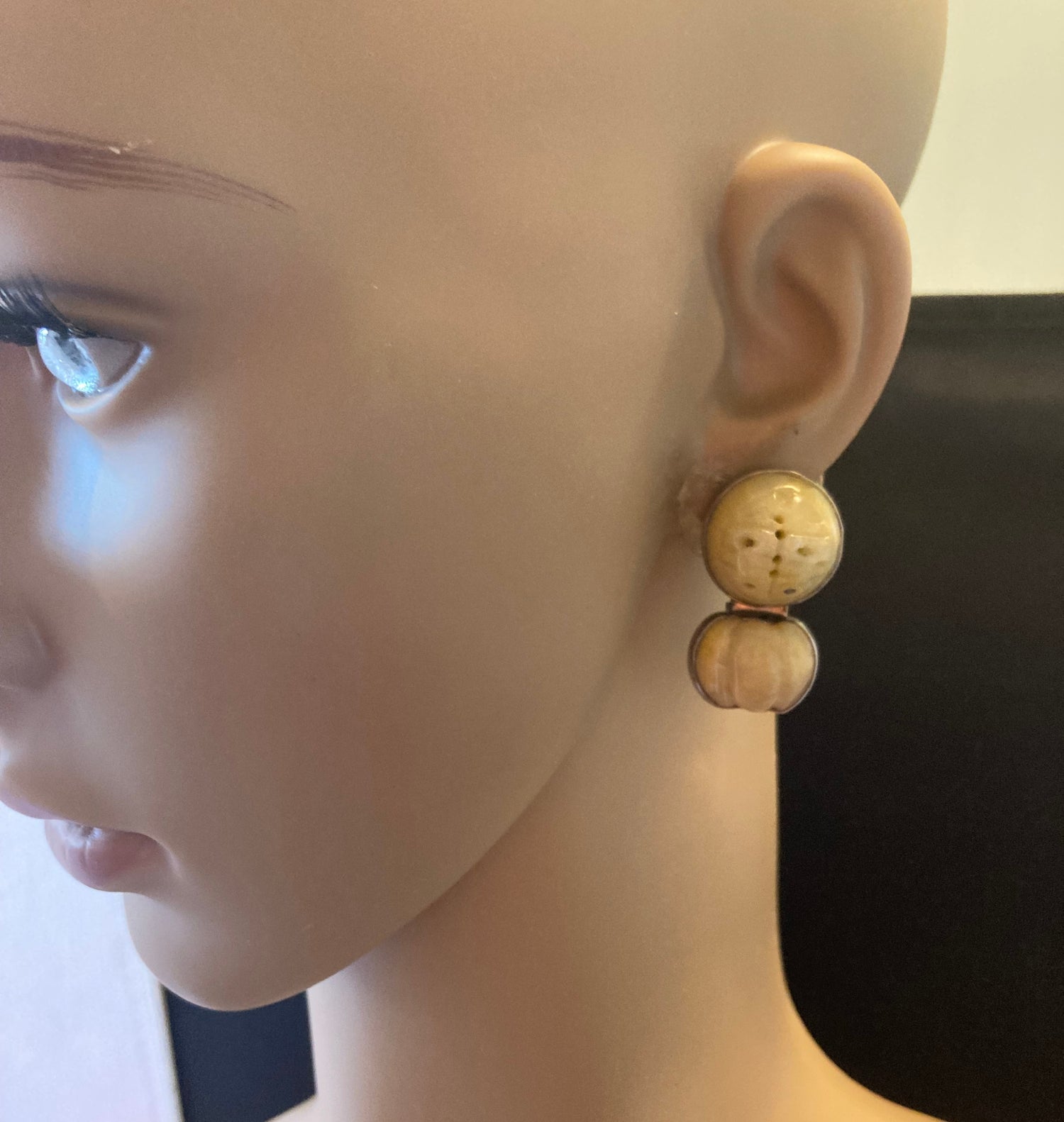 Pale Yellow Carved Jade Earring