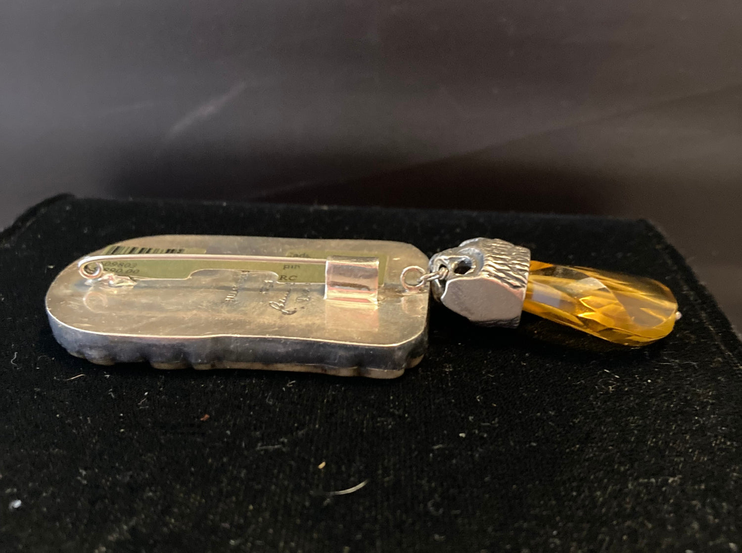 Carved Jade, Faceted Citrine Pin