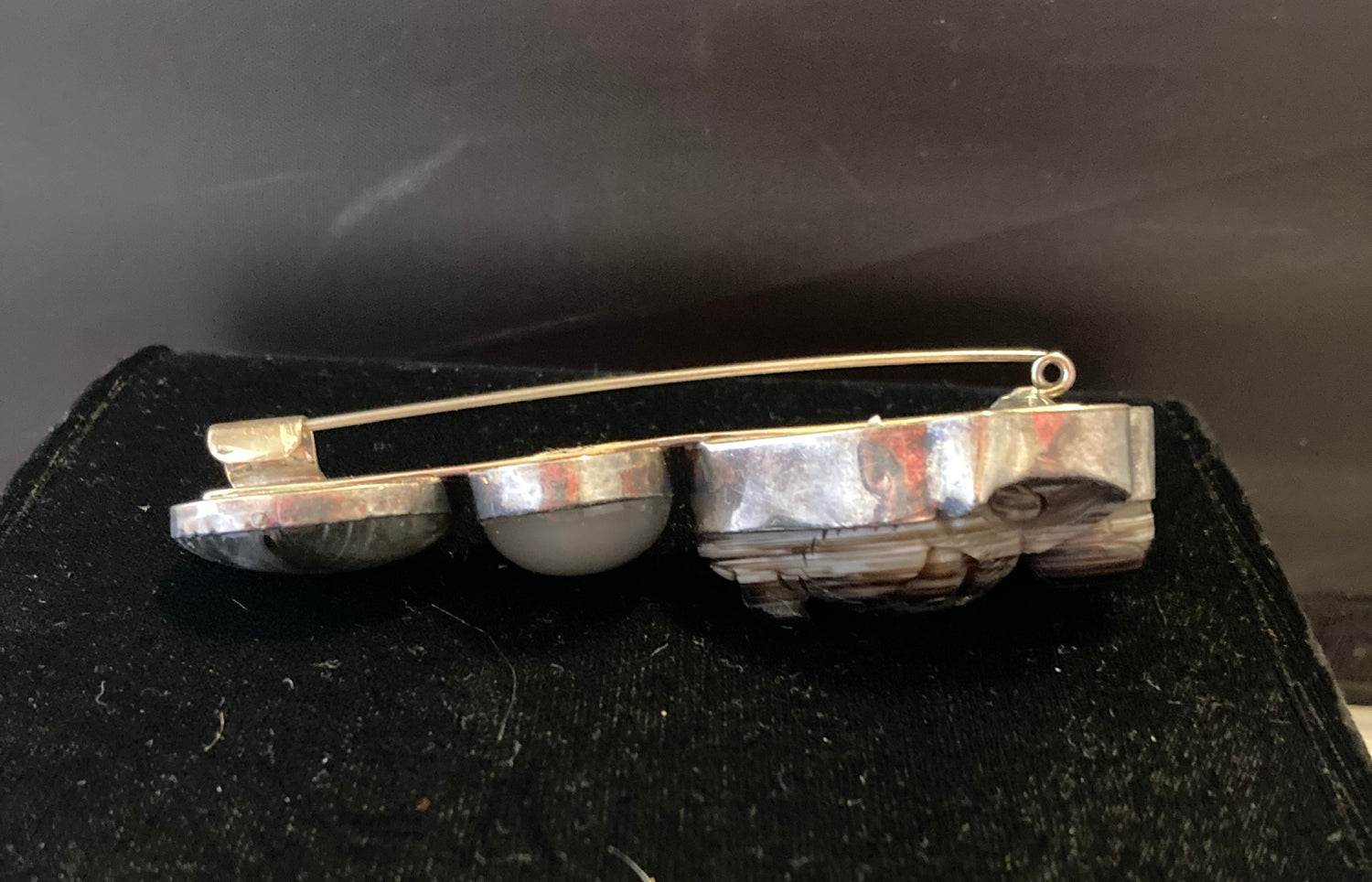 Carved Bone Face, Moonstone, Carved Labradorite Pin