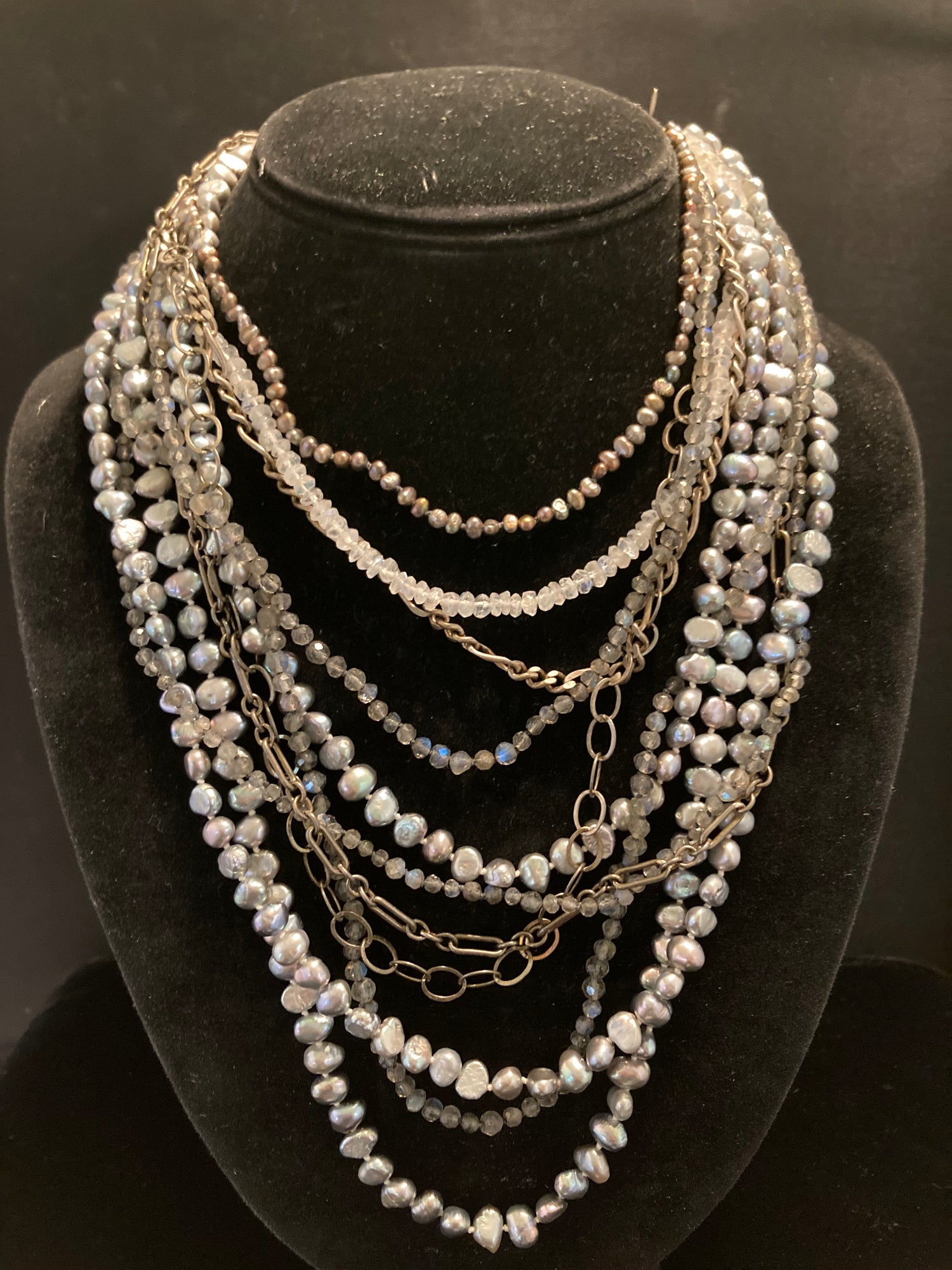 11 Crystal, Pearl, Labradorite, Sterling Silver Necklace