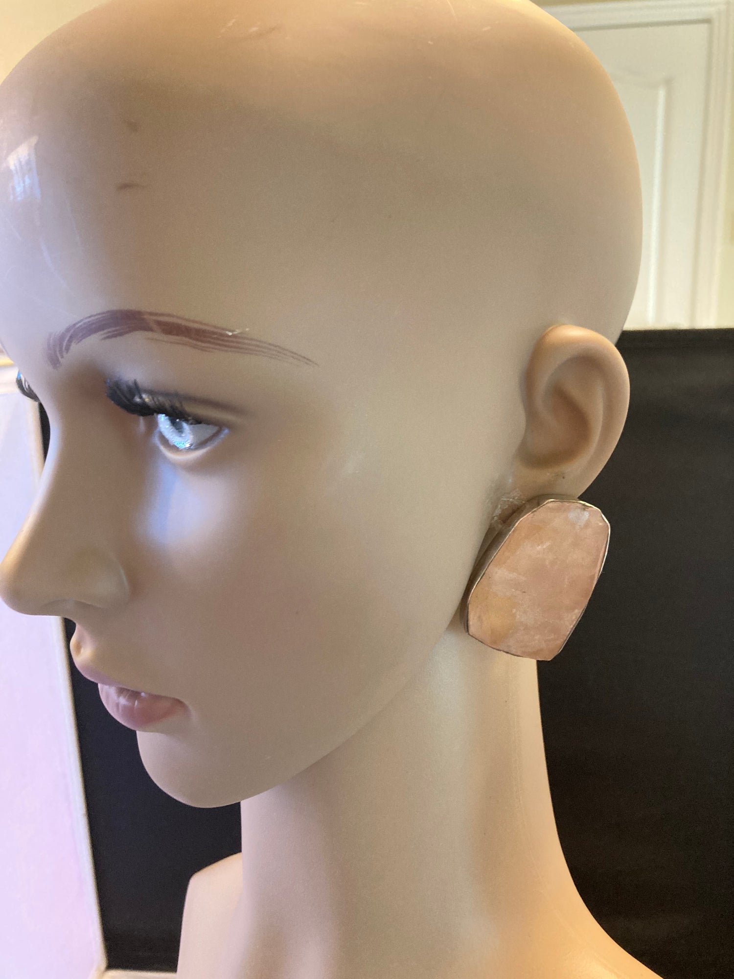 Large Faceted Rose Quartz Earring