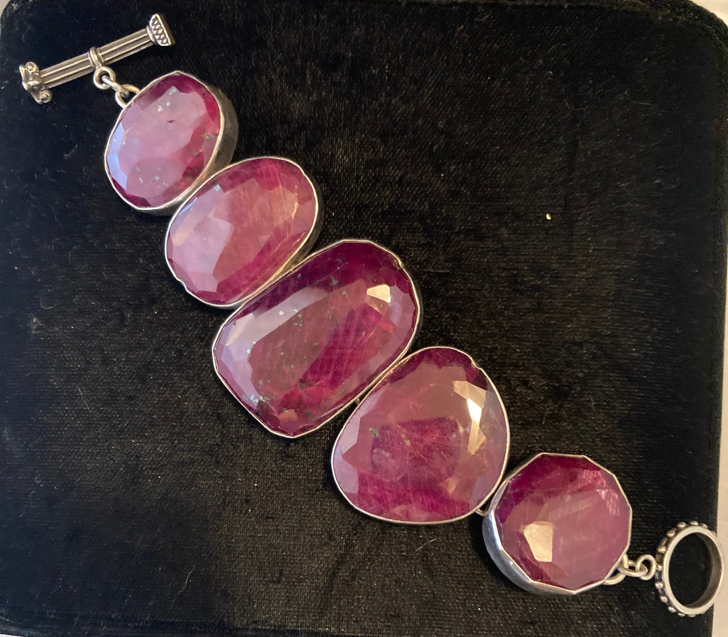 Faceted Cabochon Ruby Sterling Link Bracelet