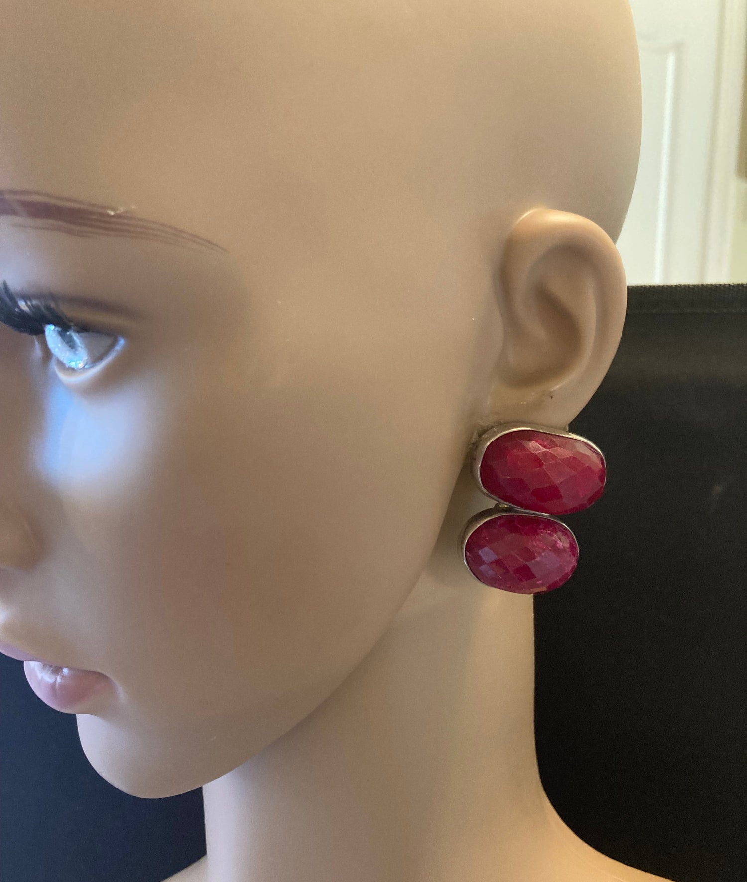 Large Cabochon Ruby Earring