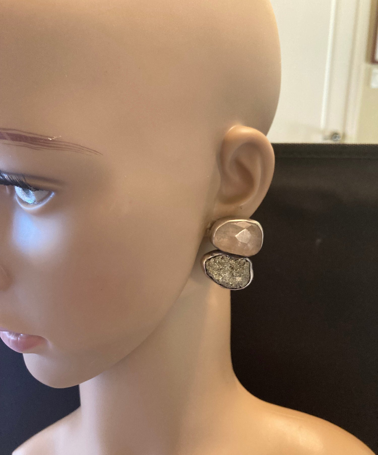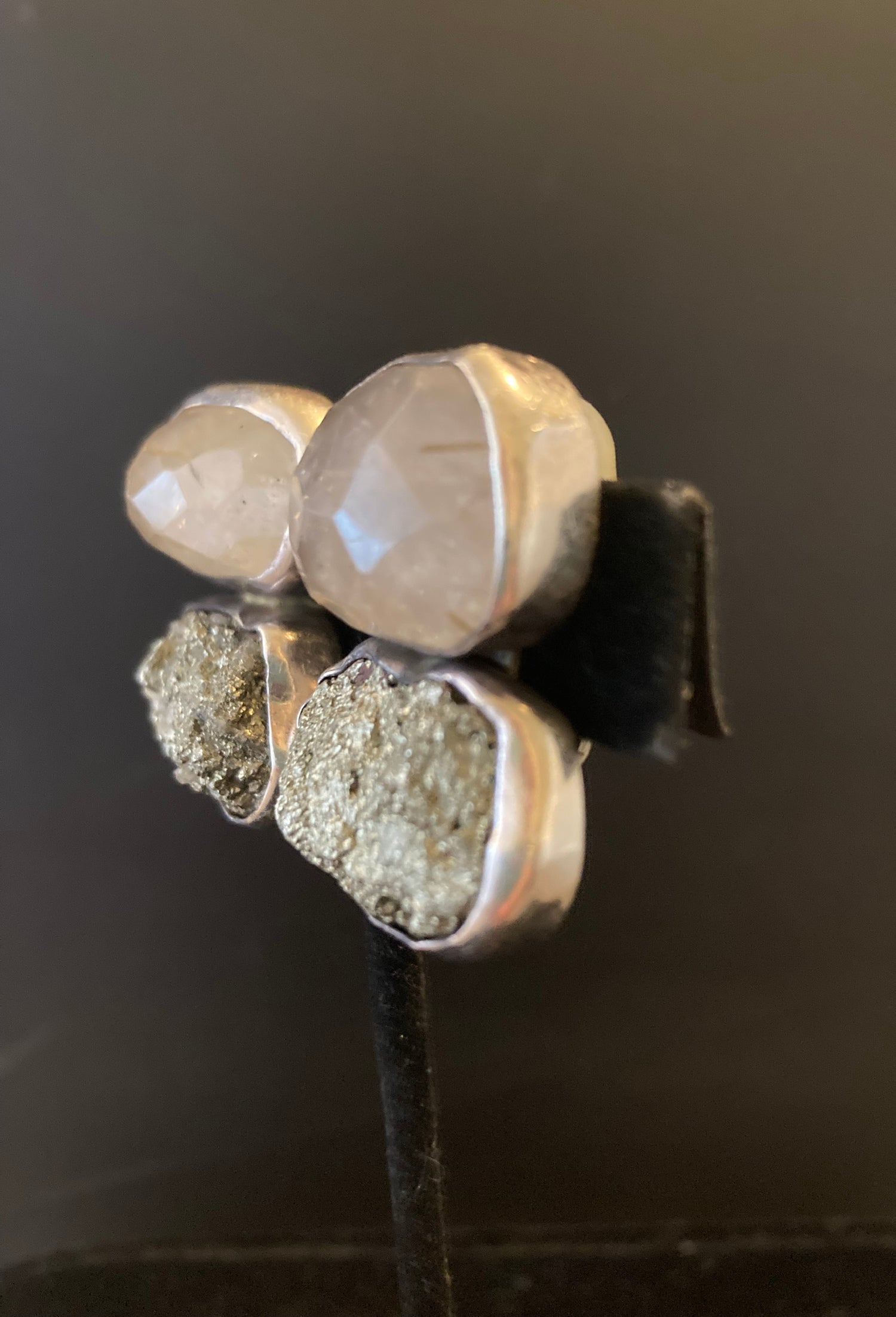 Faceted Rutilated Quartz, Pyrite Earring