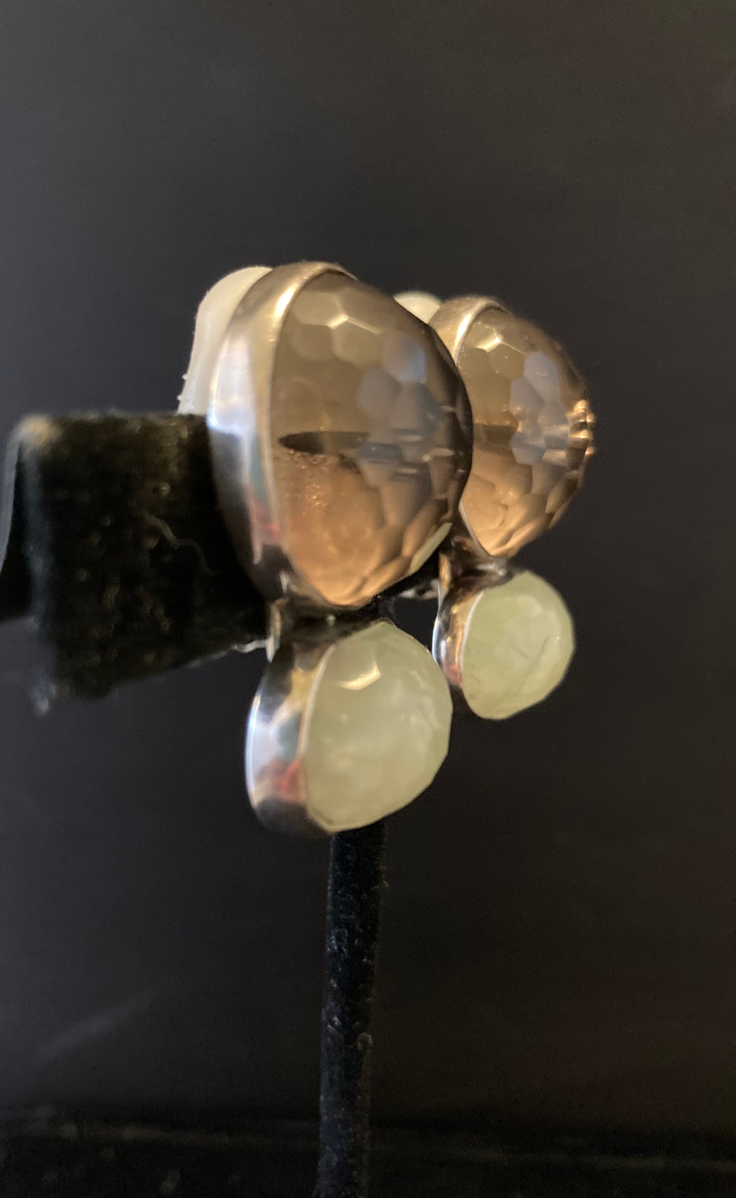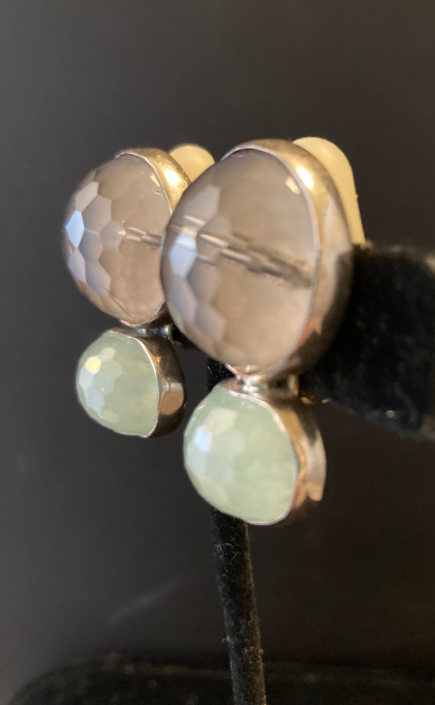 Faceted Pale Topaz, Faceted Pale Green Prehnite Earring