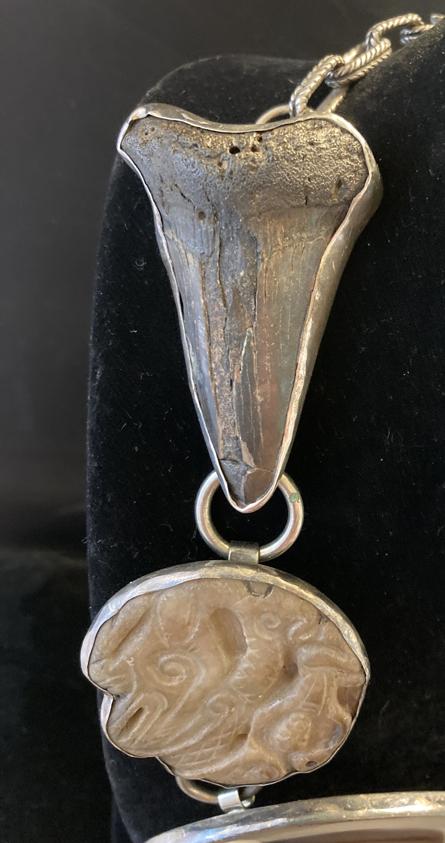 Fabulous! Vintage Agate, Carved Jade, Sharks Tooth, Amber, Zebra Jasper Necklace