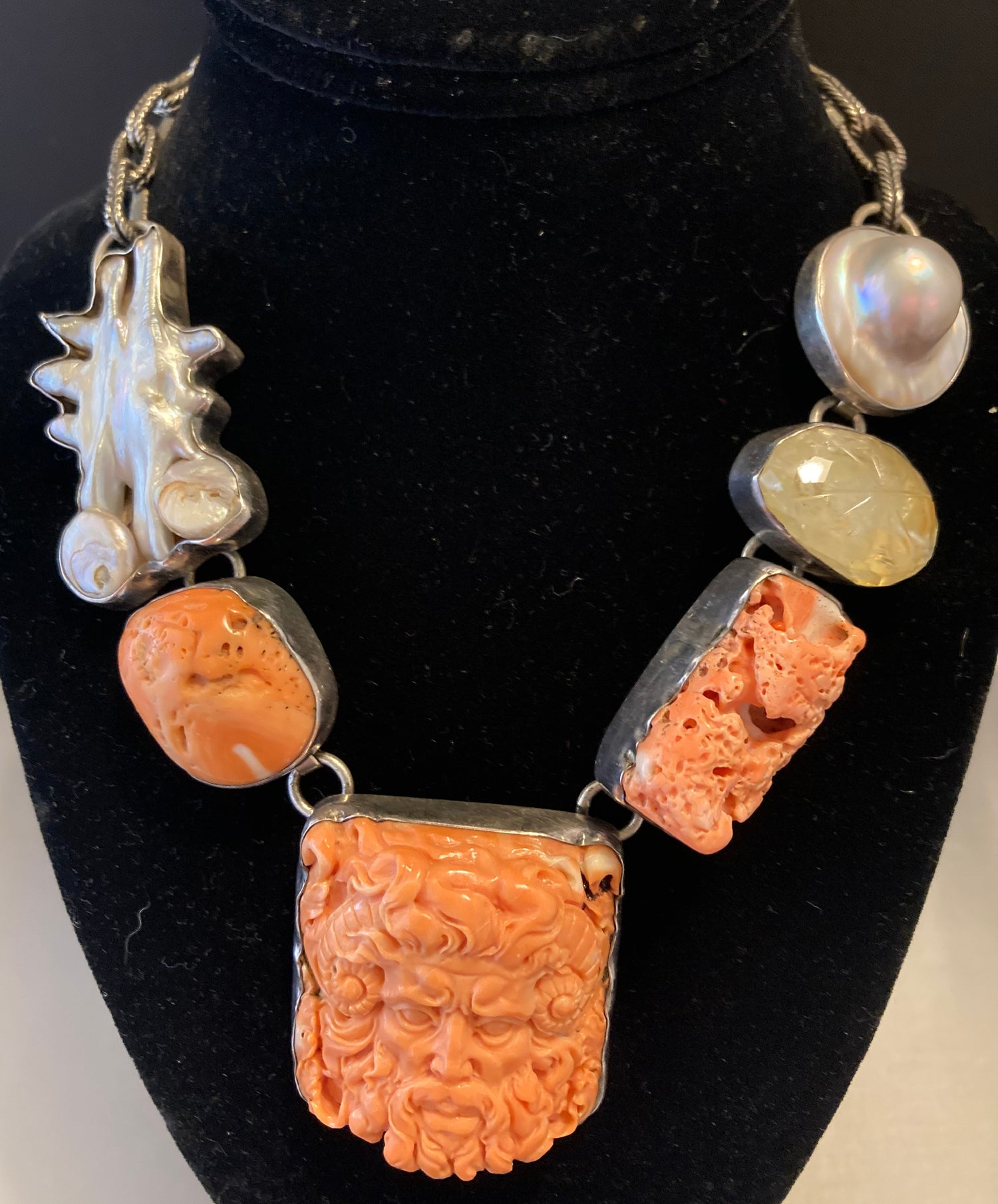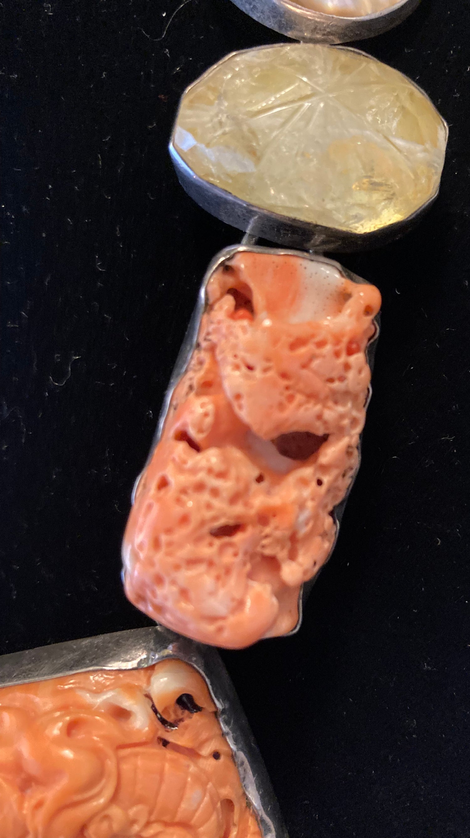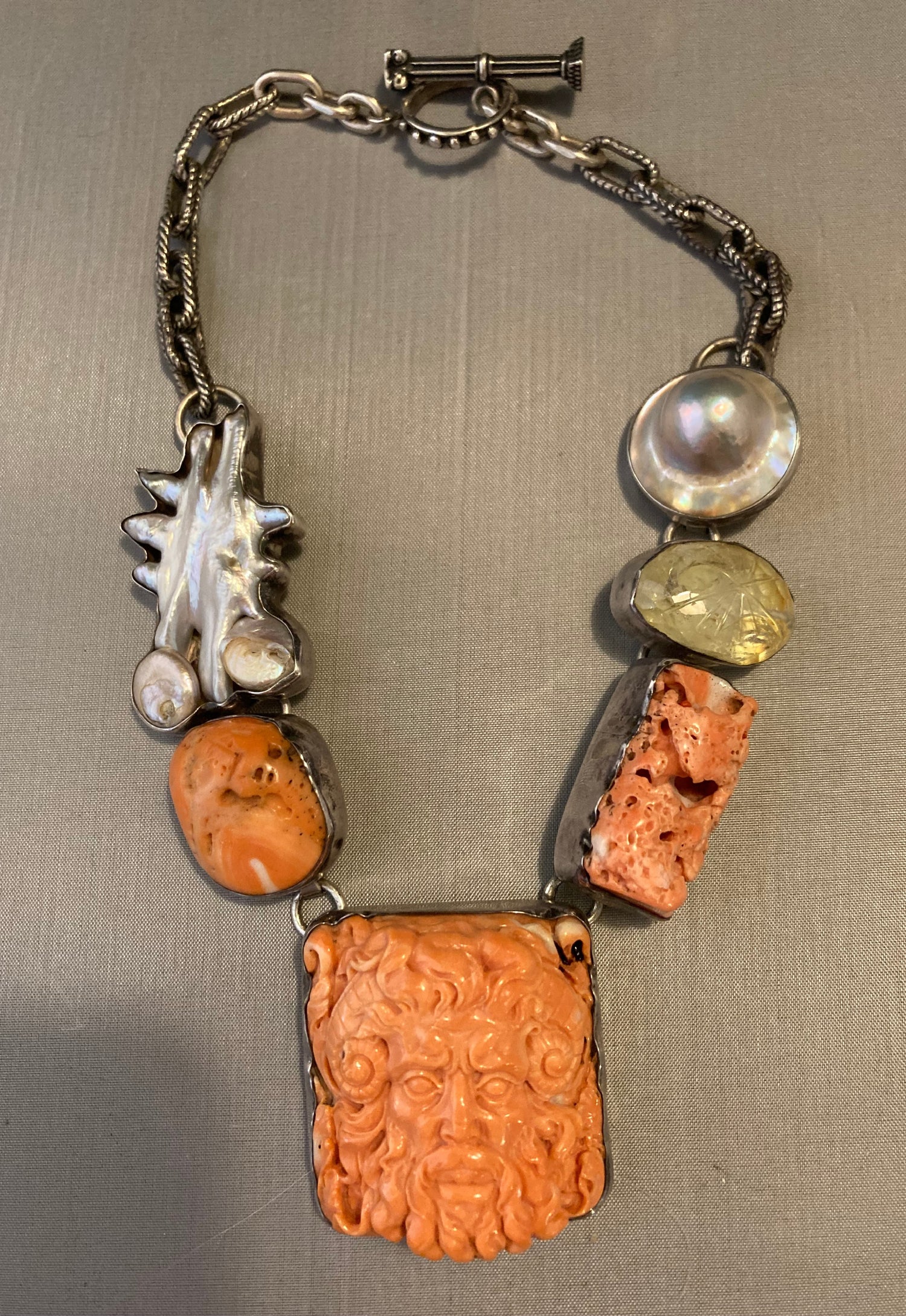 Fabulous! Carved "Zeus" Yemen Coral, Carved Citrine, Biwa Pearl, Blister Pearl Necklace