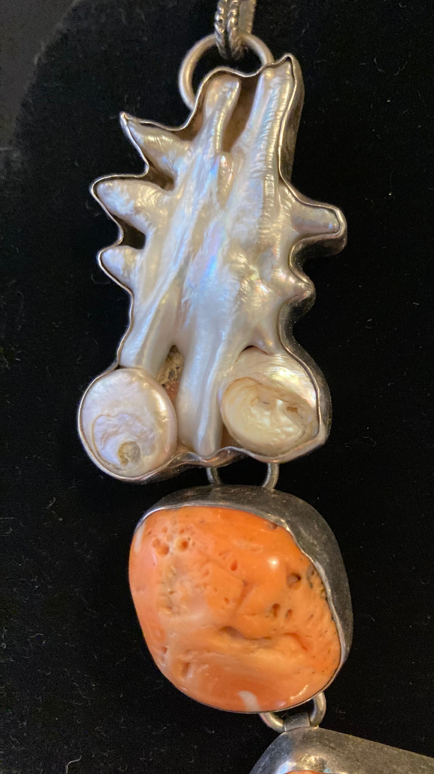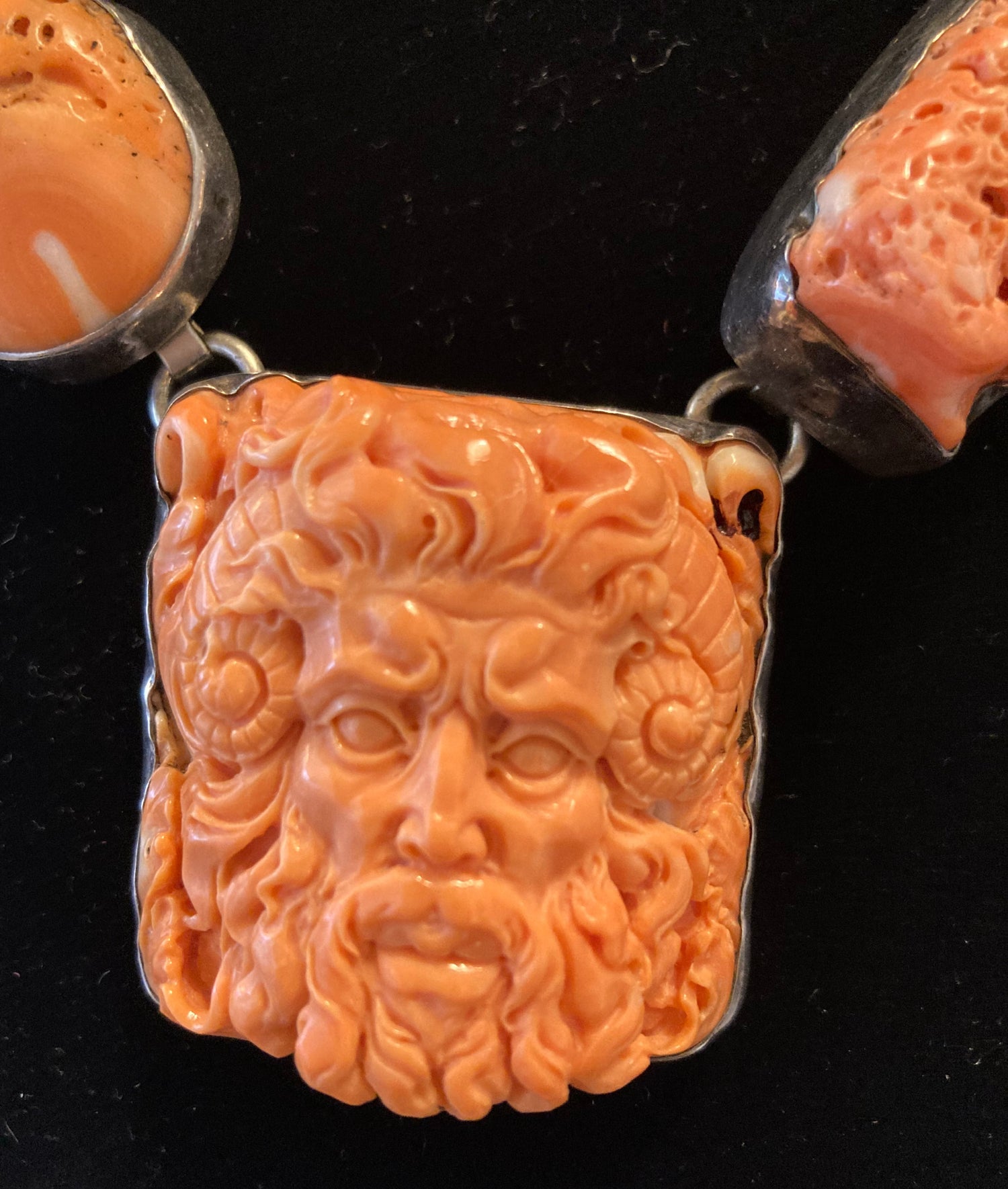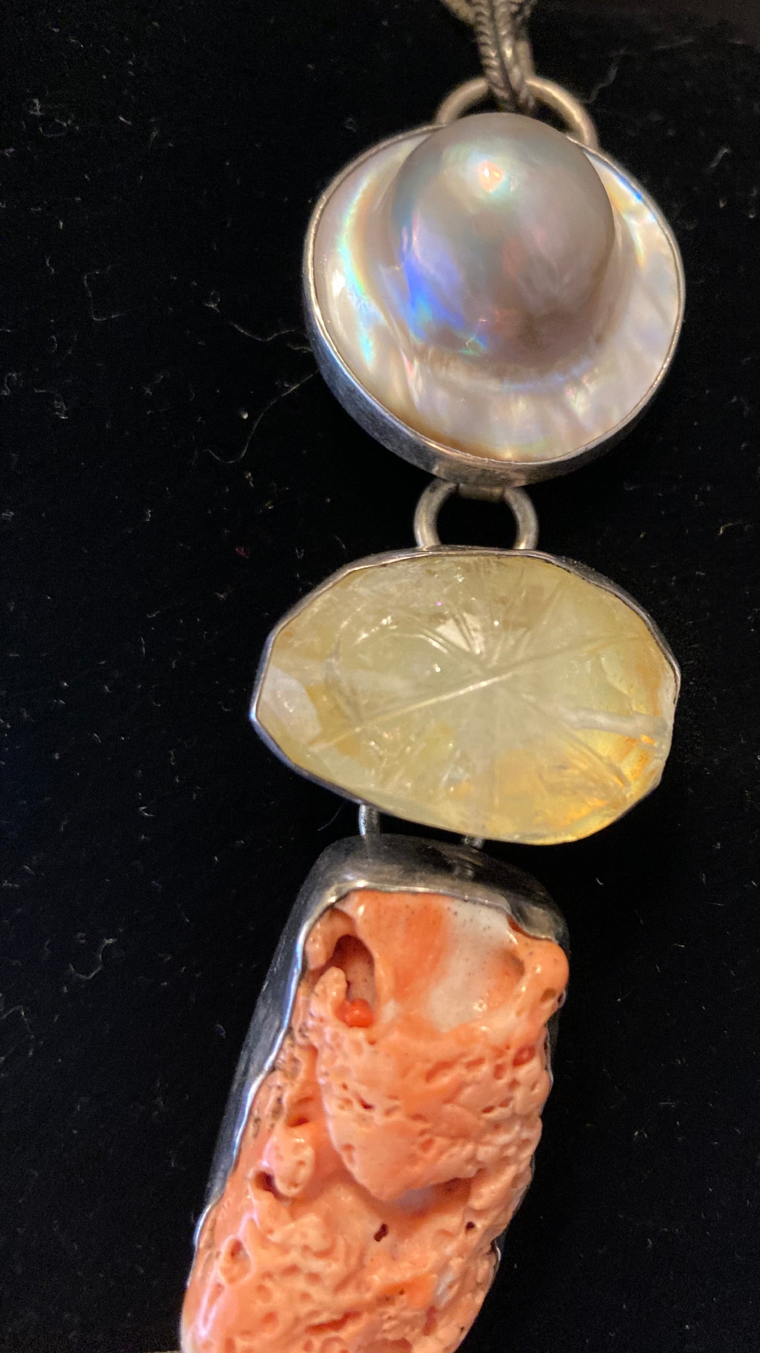 Fabulous! Carved "Zeus" Yemen Coral, Carved Citrine, Biwa Pearl, Blister Pearl Necklace